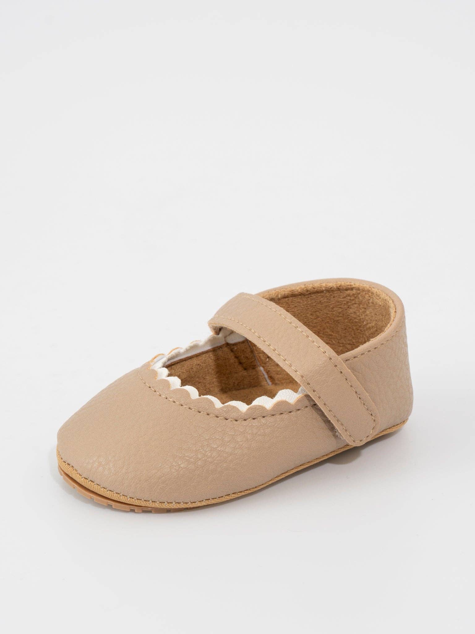Scalloped Toe Mary Jane Baby Shoe Neutral