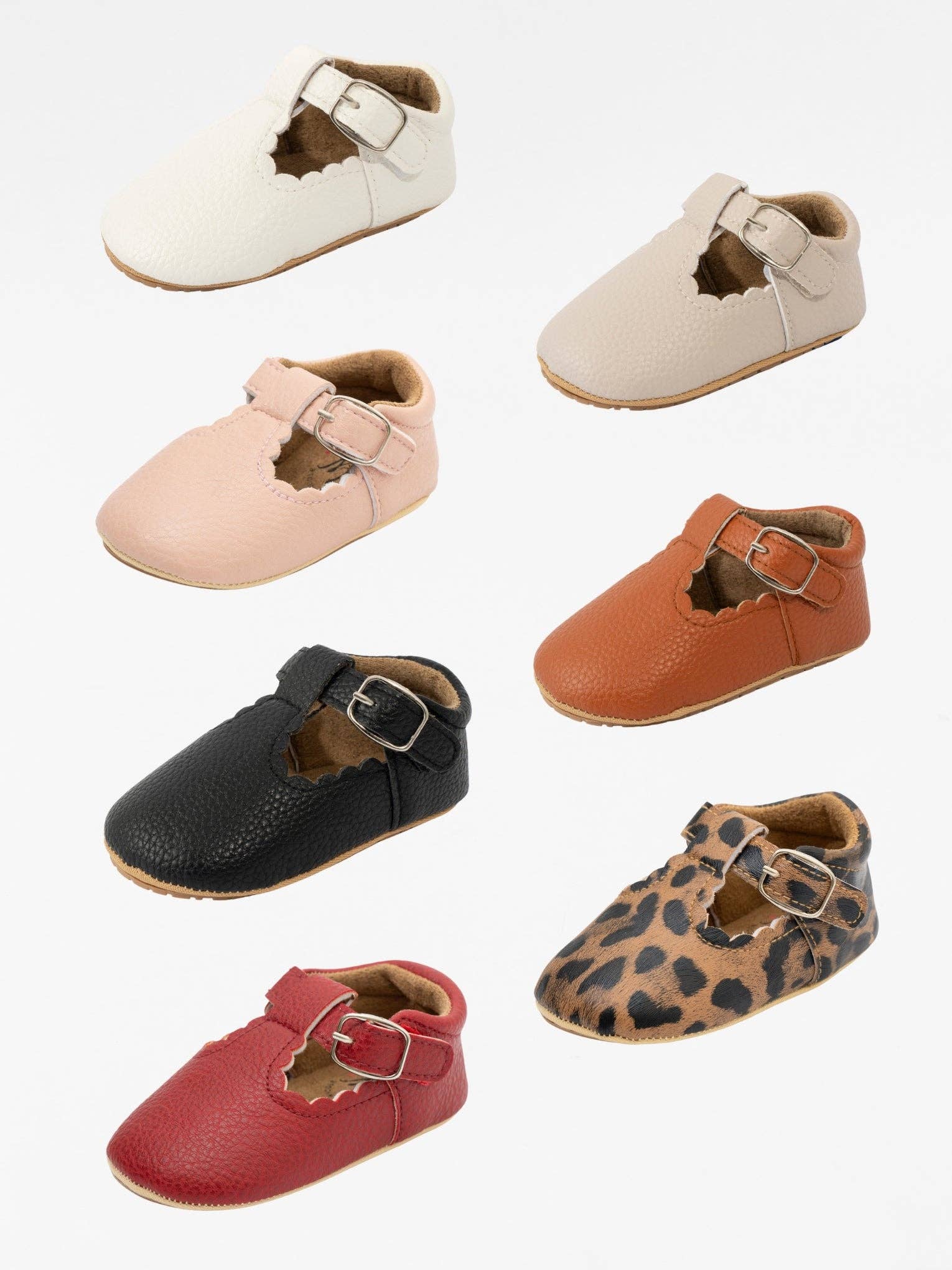 Step out in style with these man-made leather buckle shoes! Featuring velcro closures, these adorably comfy shoes will impress everyone with ease and fashionable flare. With multiple colors, there's a perfect match for almost any outfit. * Soft rubber sole * Velcro Closure * 100% man-made material * Fits true to size *